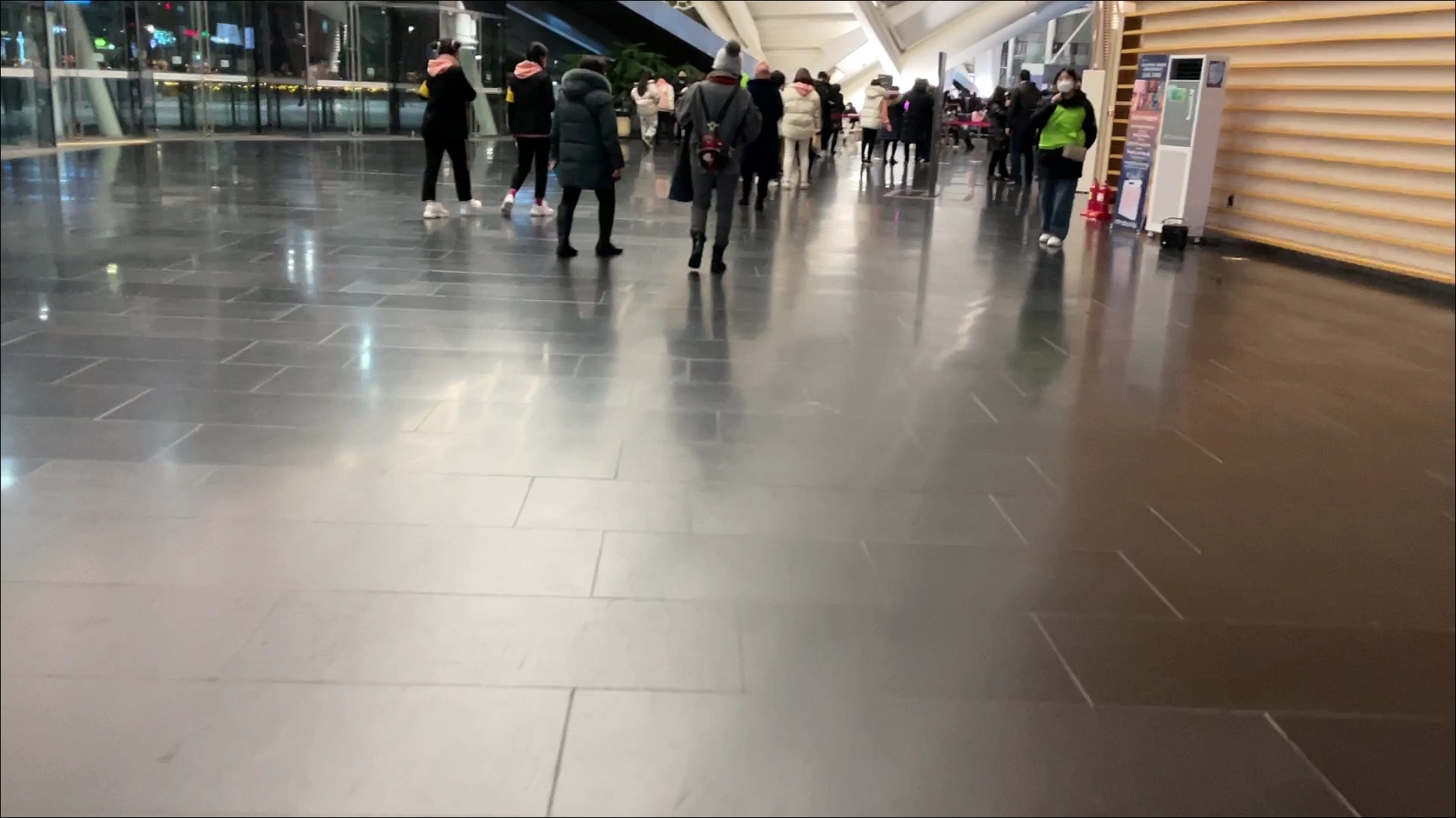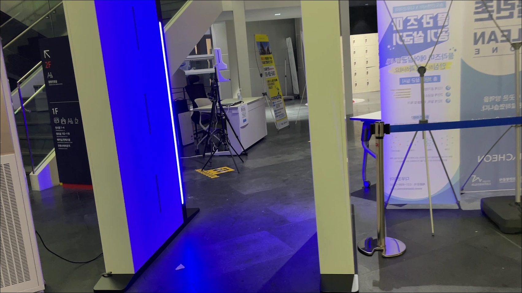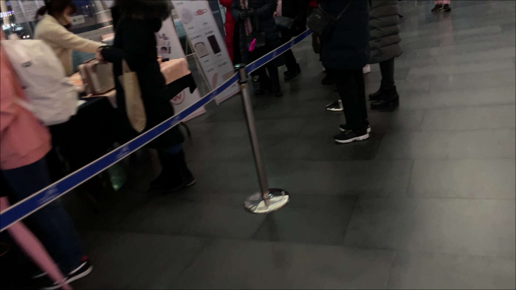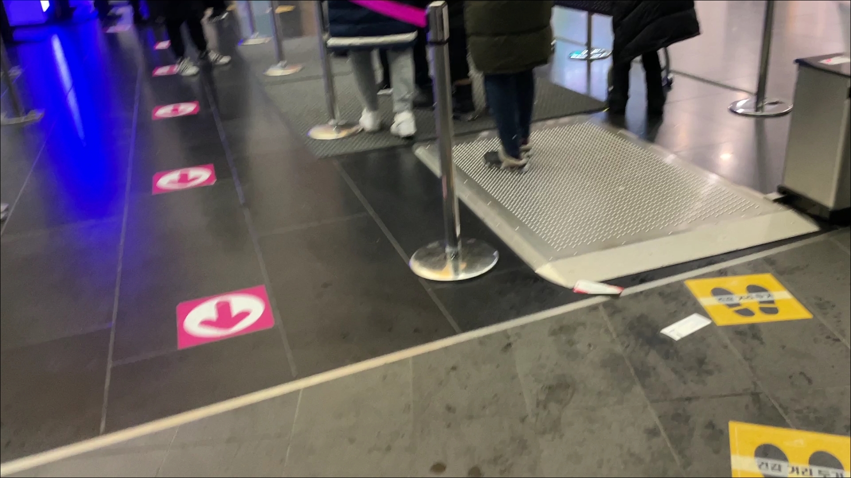 게이트 앞에 이렇게 통행선을 그어놓고 그 옆에 안심콜 번호 피켓을 들고 서있는 분들이 계셨다.