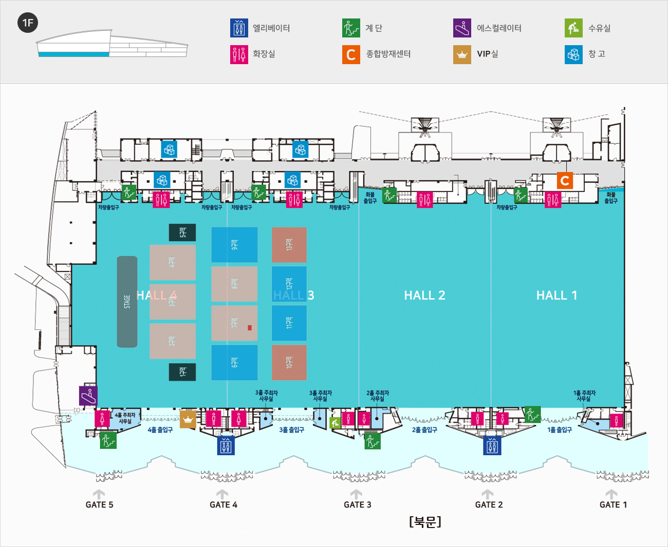 왼쪽에서부터 각각 게이트 5, 4, 3, 2, 1 이다.
