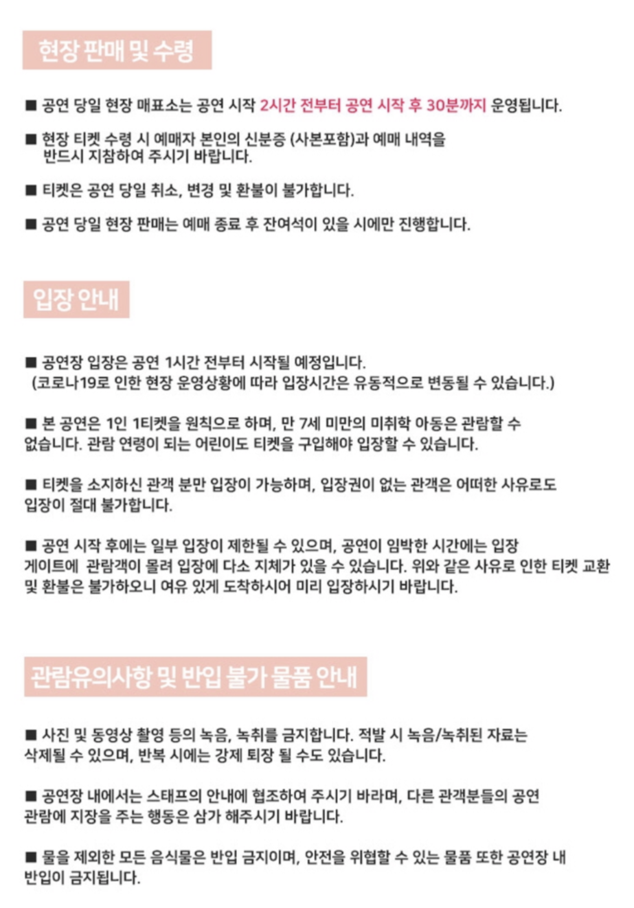현장에서의 티켓수령은 공연 2시간 전에 오픈하여 공연 시작 후 30분이 지난 시점까지 수령할 수 있었다.