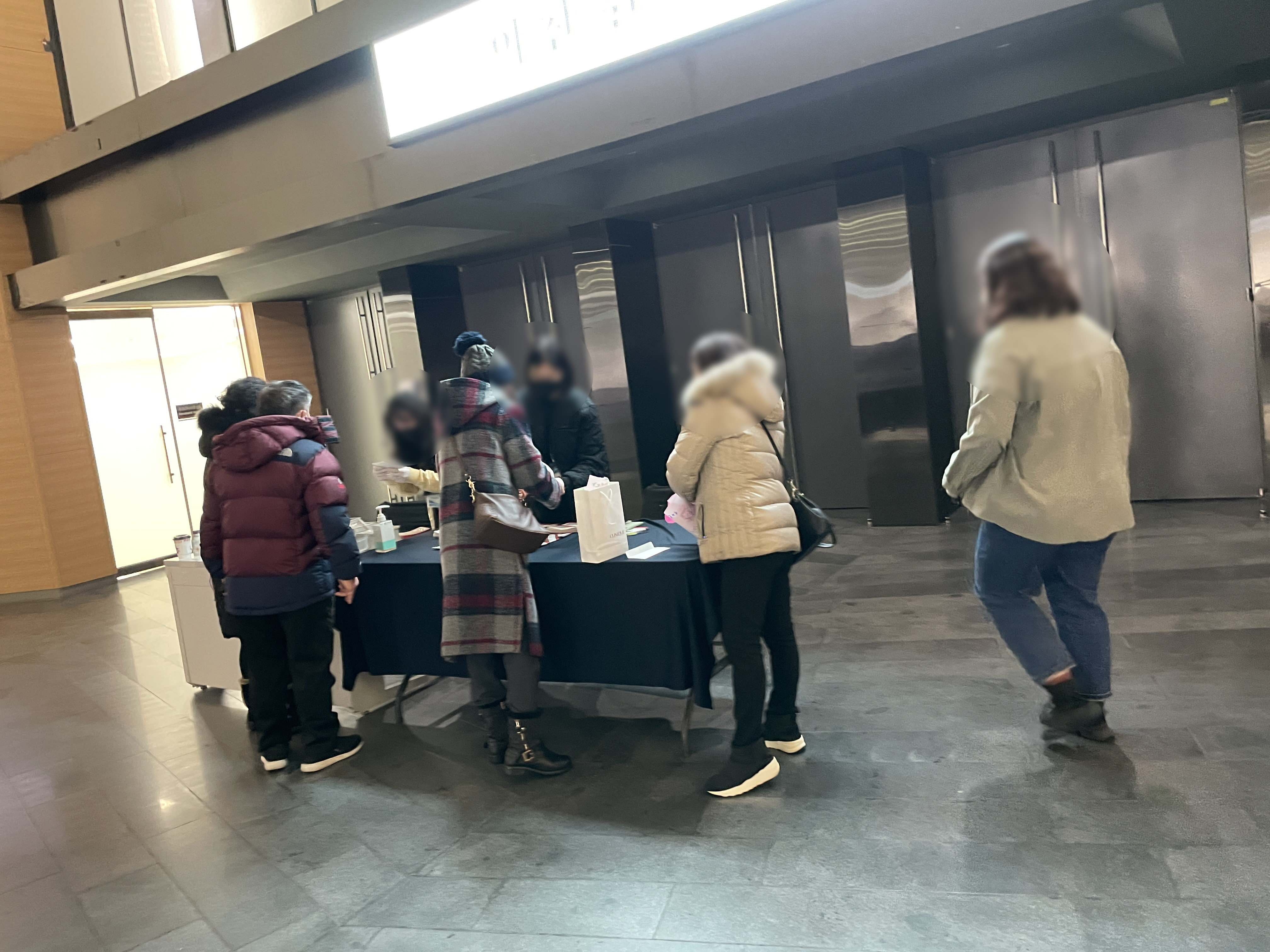 이 입구앞에 계신 분들이 입장하는 관람객의 안심콜 여부를 보기 위해 통화내역을 확인하셨다.