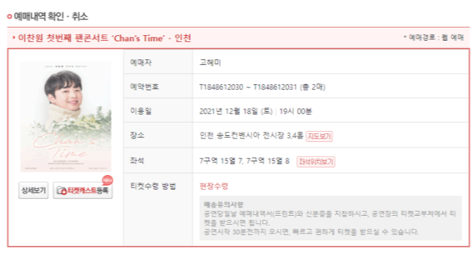 티켓 구매는 인터파크티켓을 통해 예매하였다.