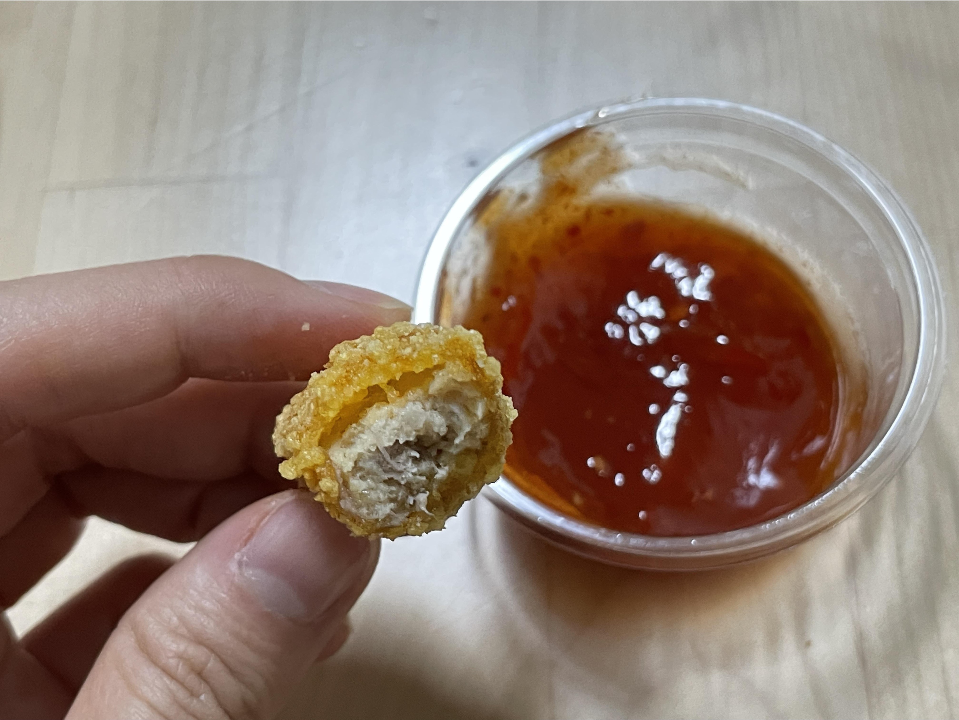 튀김과 모양이 탕수육과 흡사하다. 맛도 탕수육과 흡사하다.