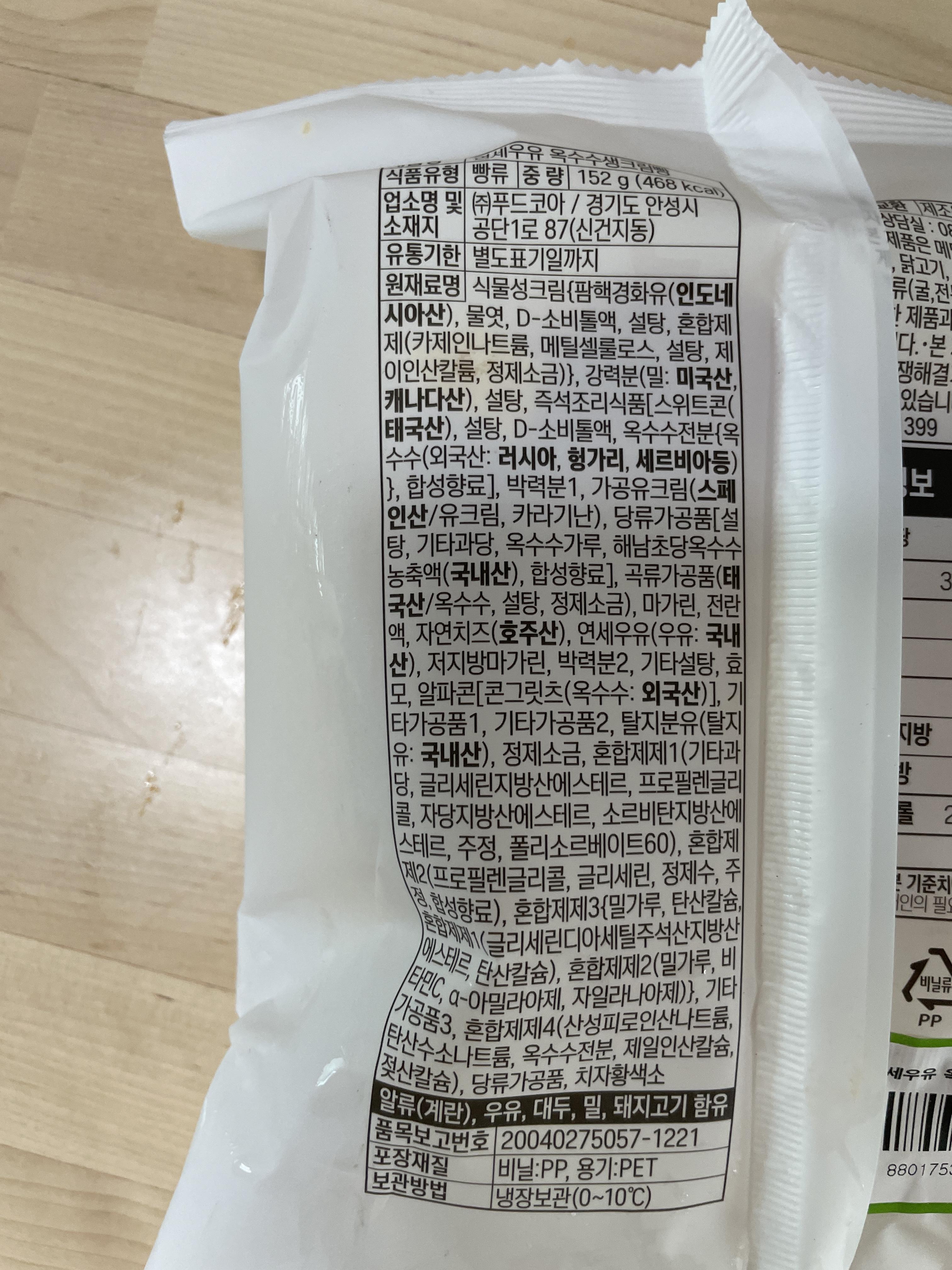 냉장고에 보관되어있는 나의 옥수수생크림빵!