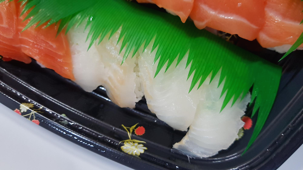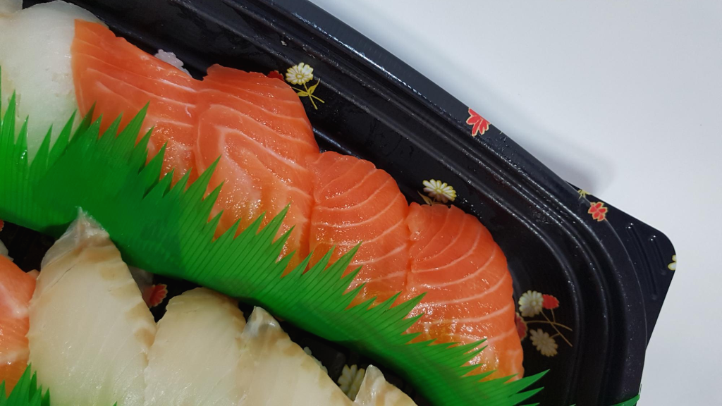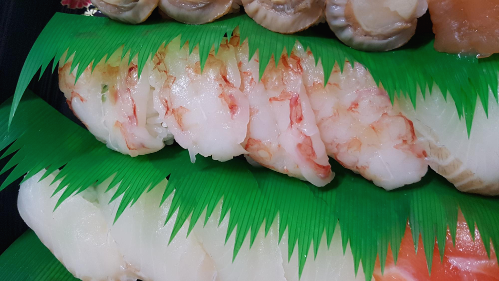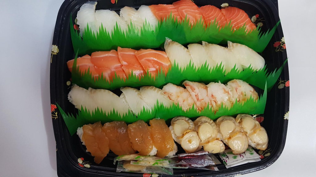 원재료가 표시되어 있는 부분을 읽어보니 연어, 농어, 광어, 새우, 간장새우, 가리비 초밥으로 구성되어 있다.