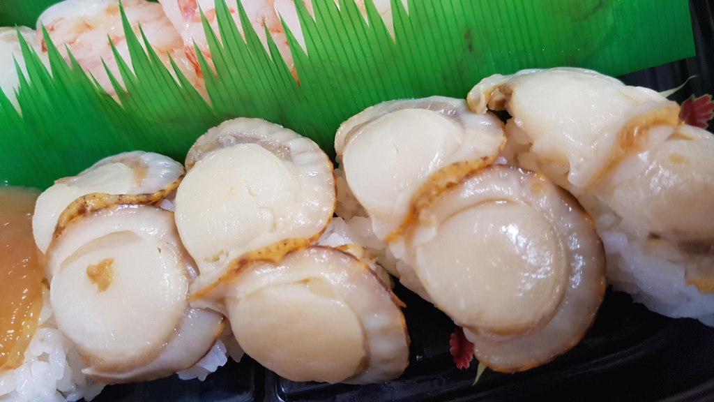 이번엔 가리비. 쿠우쿠우에서 먹어본 가리비초밥의 가리비보다는 조금 더 큰 사이즈다.