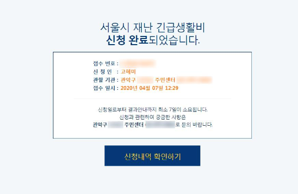 접수가 잘 되었으니 이제 구청에서 소득 조회를 하고 지급이 결정되기만을 기다리면 된다.