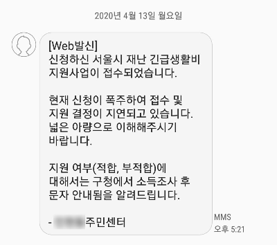 위와 같은 사진의 문자안내로 생활비가 지급이 되었다.