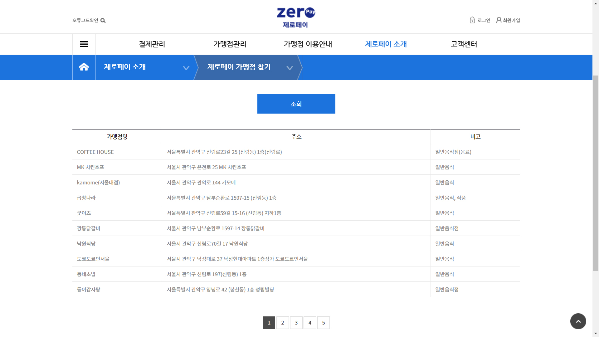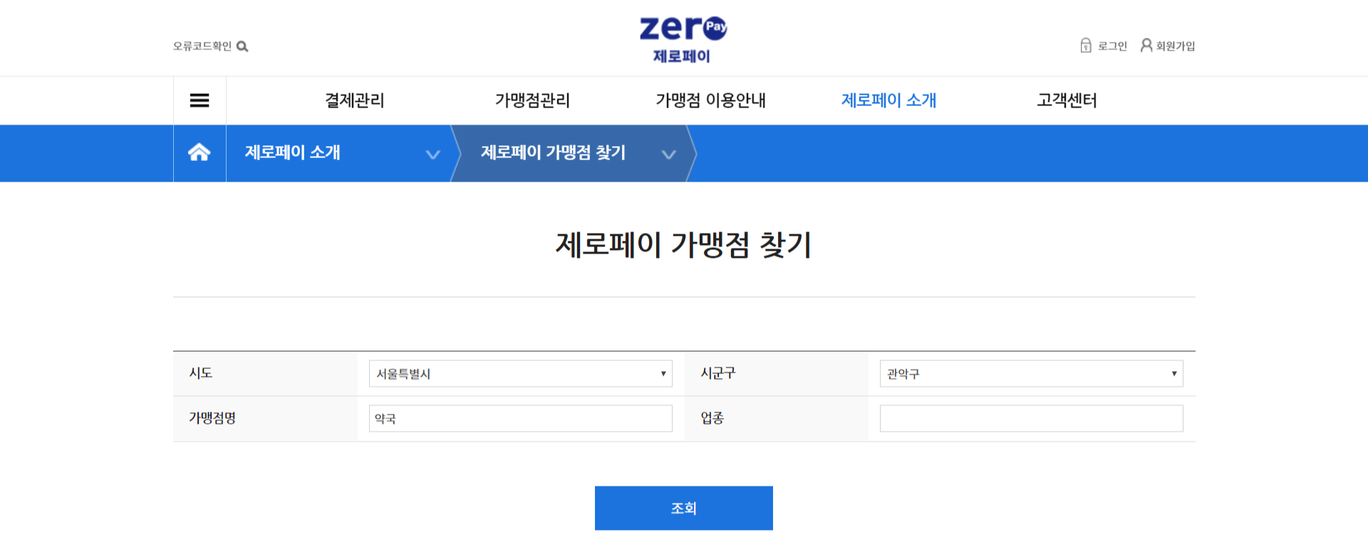 2. 제로페이 홈페이지의 가맹점 찾기로 검색하기