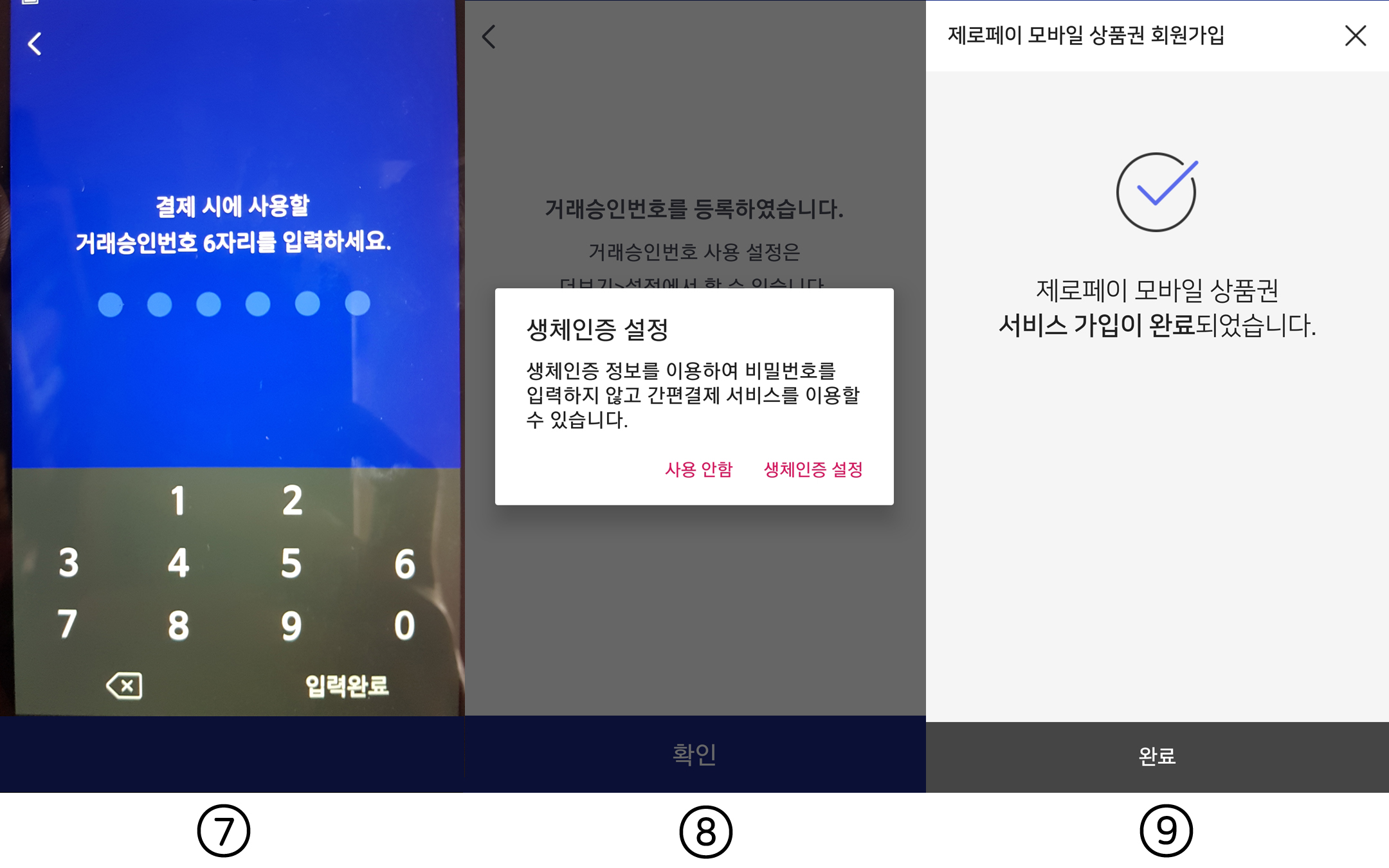 9. 8번 사진에서 사용안함을 누르고 나니, 모바일상품권 사용을 위한 가입이 완료되었다!