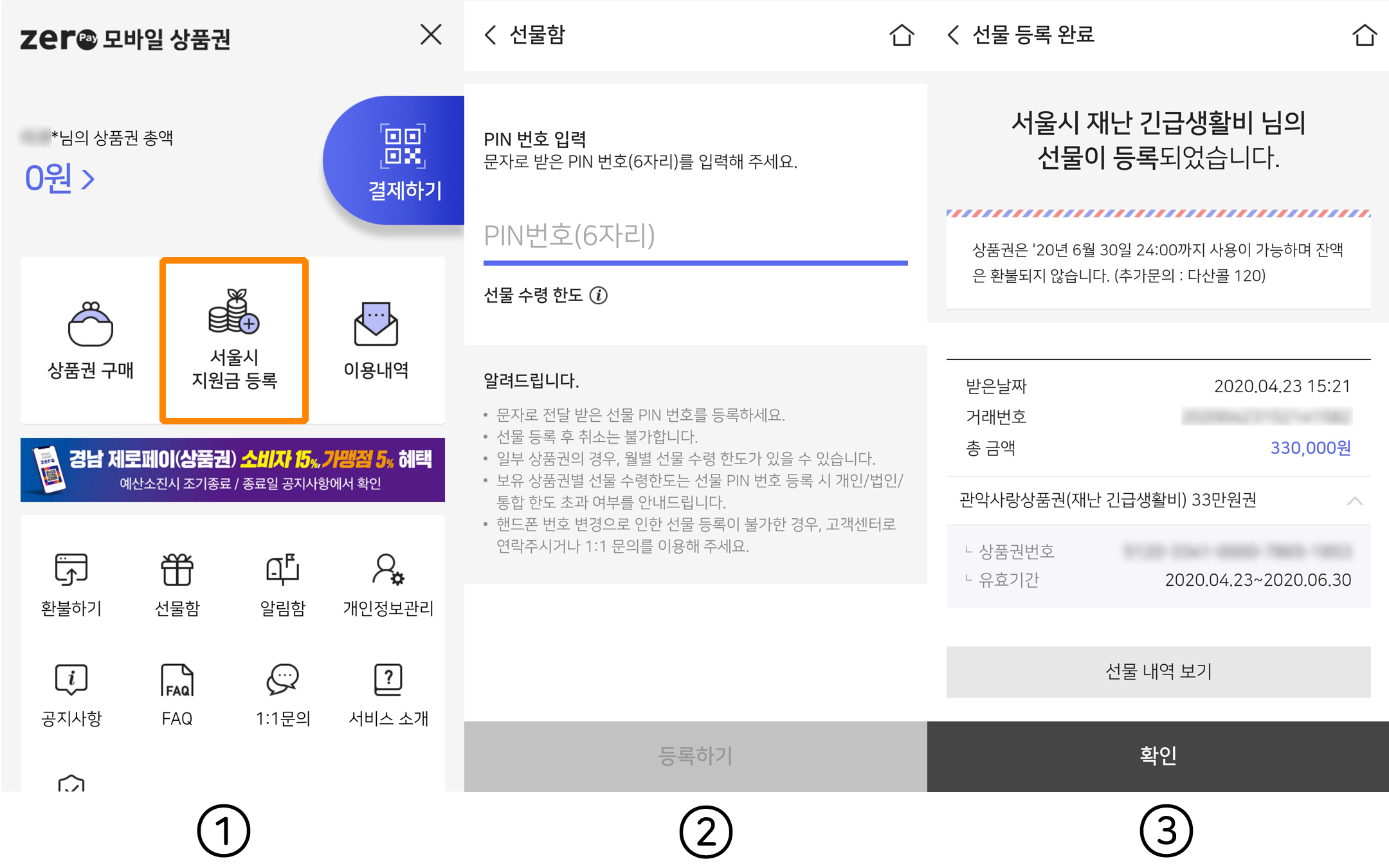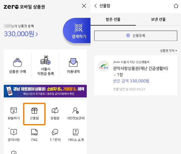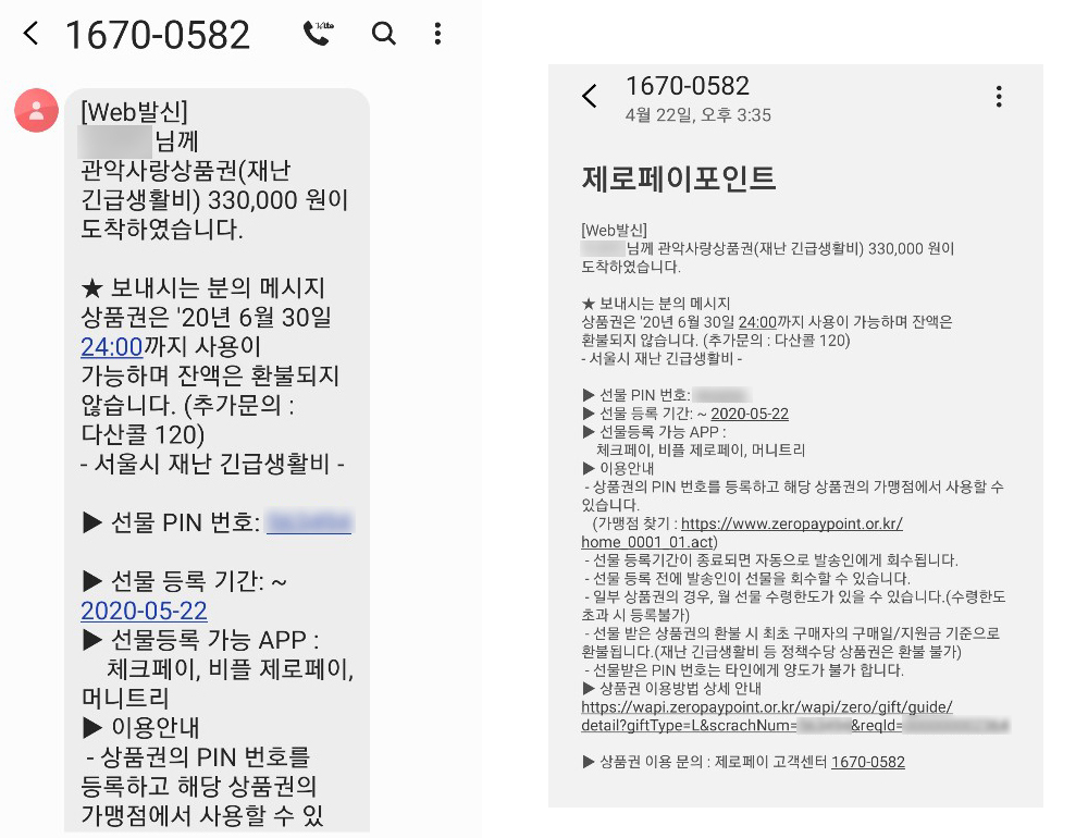이 모바일상품권으로 받은 서울시 재난 긴급생활비는