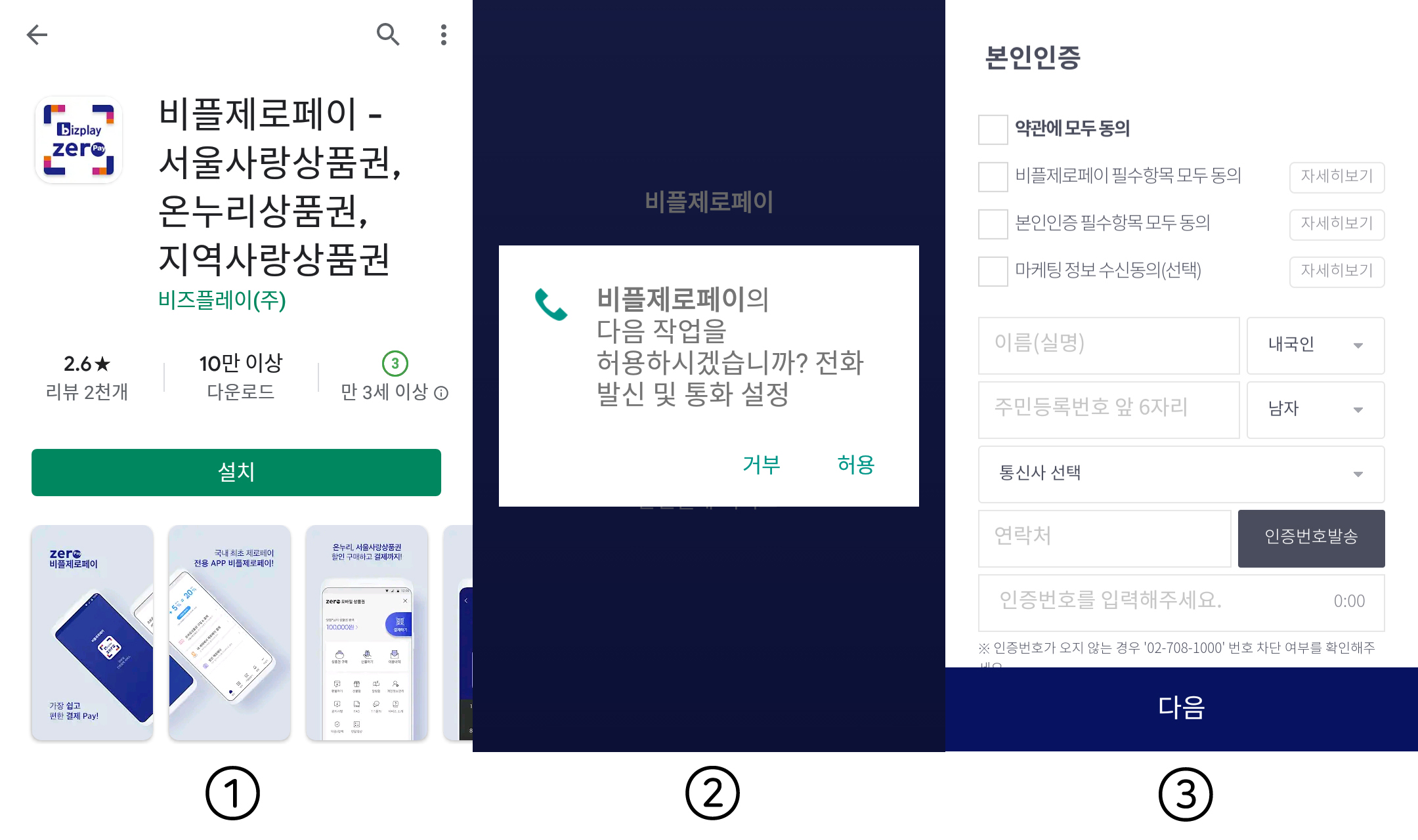 본인의 경우 위의 앱들 중 비플 제로페이 앱을 이용하였으므로