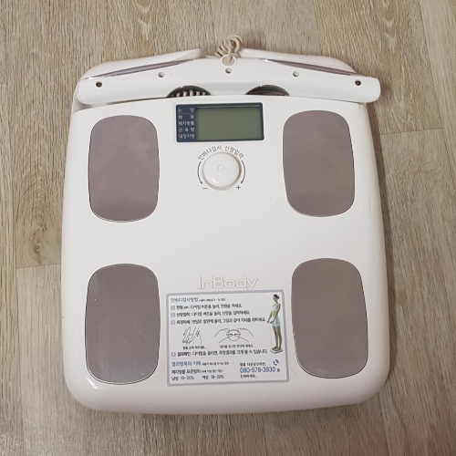 체중조절을 해야겠다는 생각에 현재 상태를 체크하기 위해 인바디를 발끝으로 꾹 눌렀다.