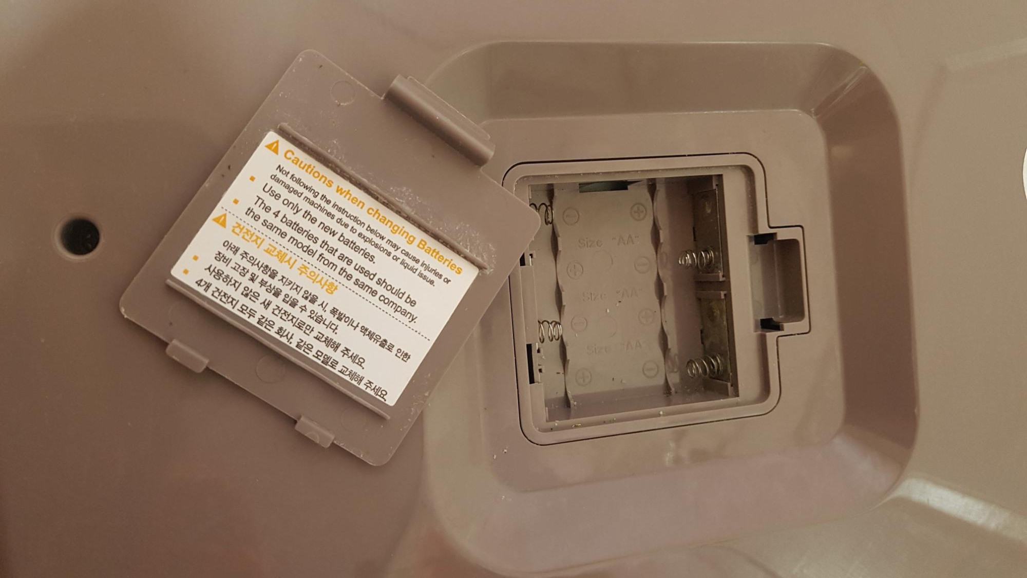 기판에 보면 '4개 건전지 모두 같은 회사, 같은 모델로 교체해 주세요.'라고 적혀있다.
