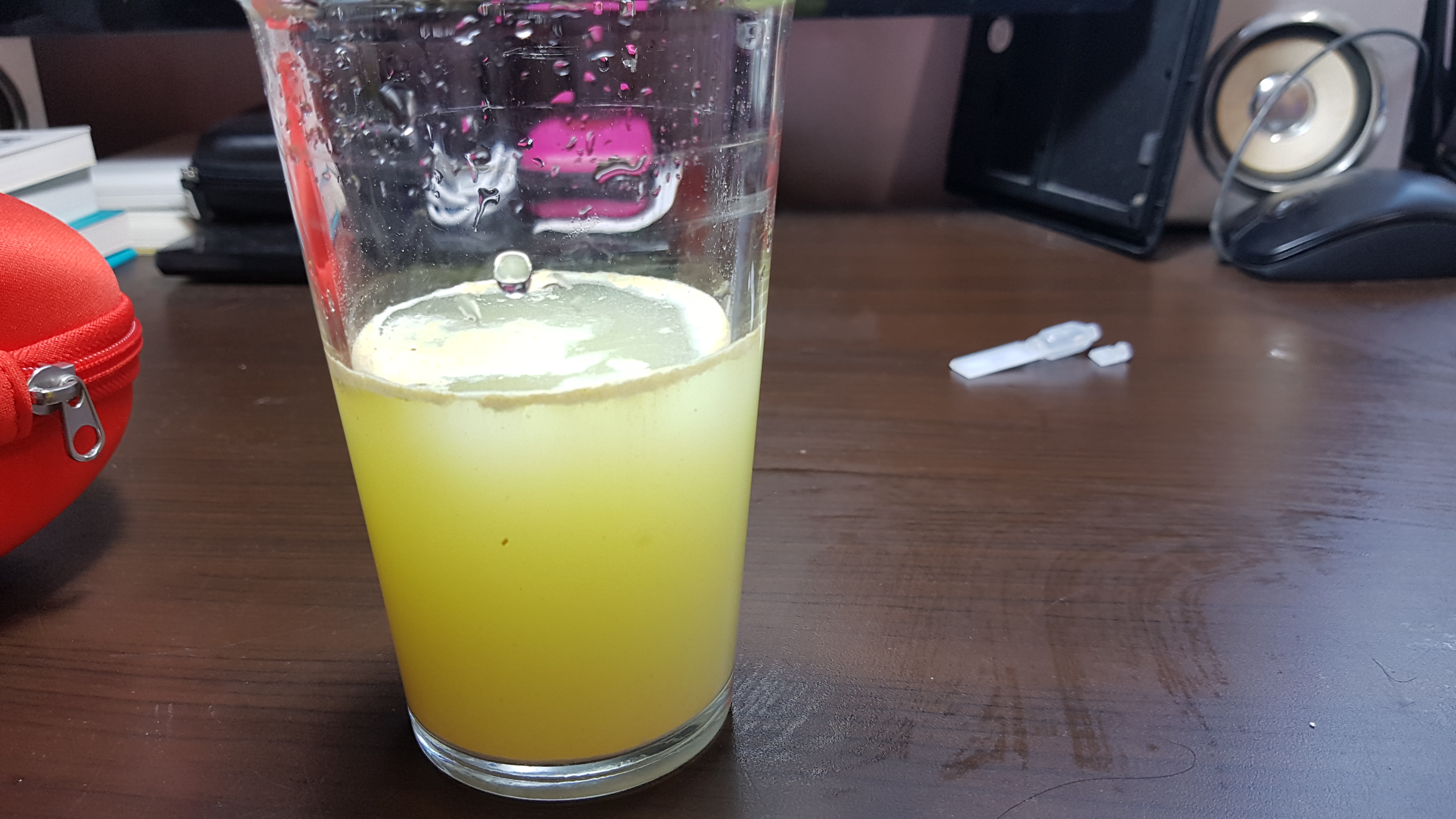 물에 넣고 휘젓지도 않고 그냥 가만히 냅뒀는데 아랫부분이 서서히 노래지고 있었다.