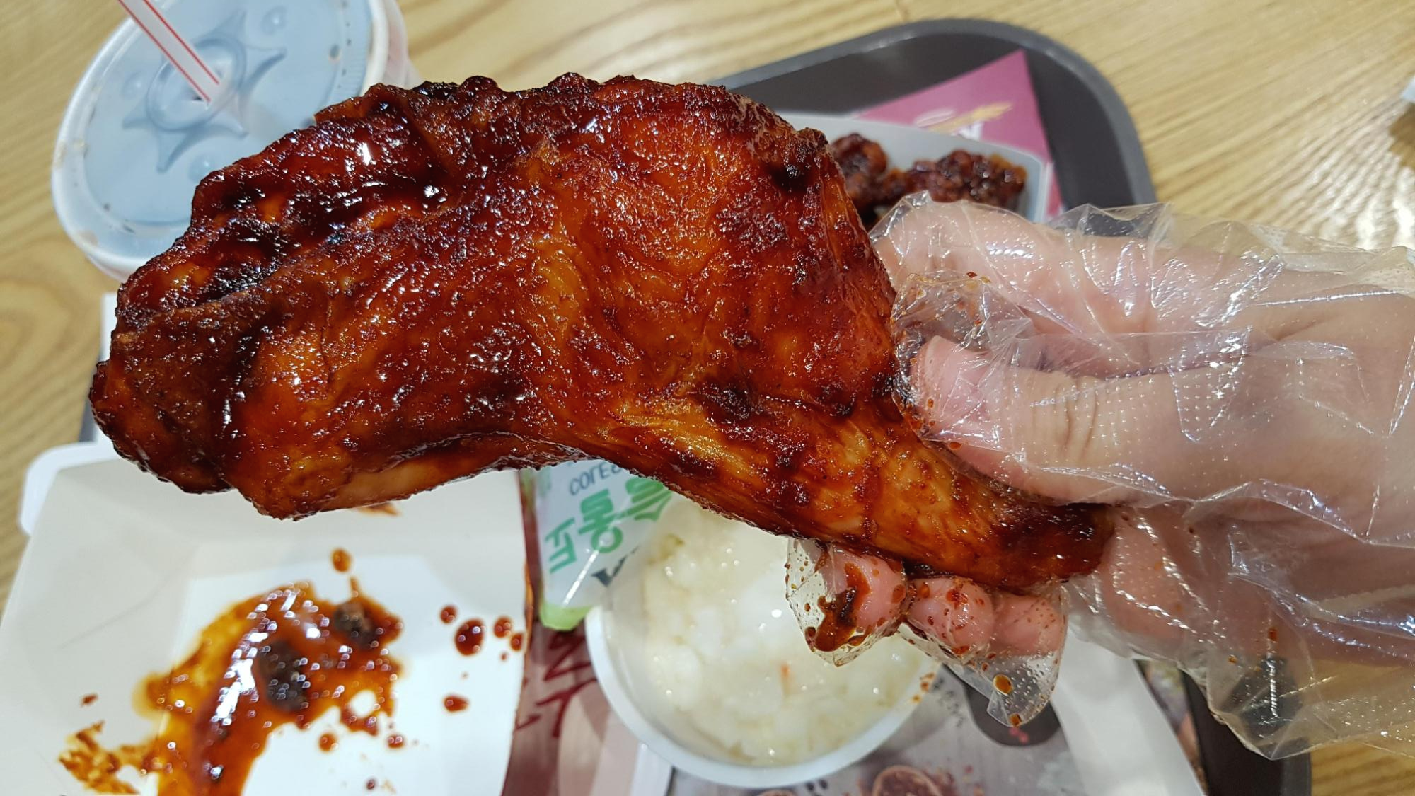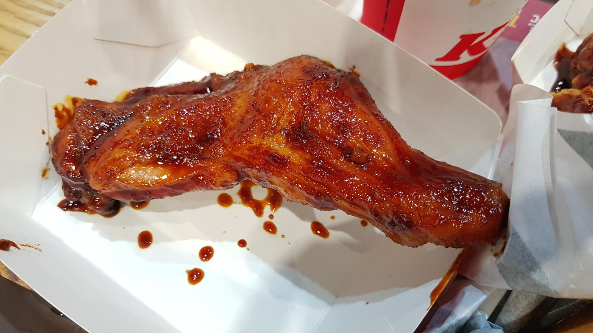 KFC의 이 켄터키는 훈제하지 않고 한번 구운 닭다리를 양념에 조린 것 같았다.