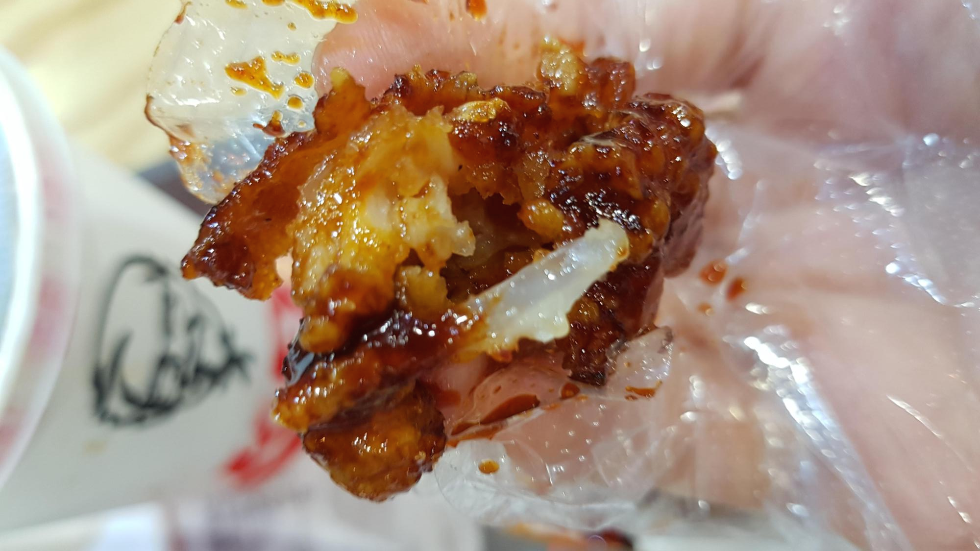 튀김옷을 조금 더 야금야금 먹어보니 닭발의 모양이 잘 보인다.
