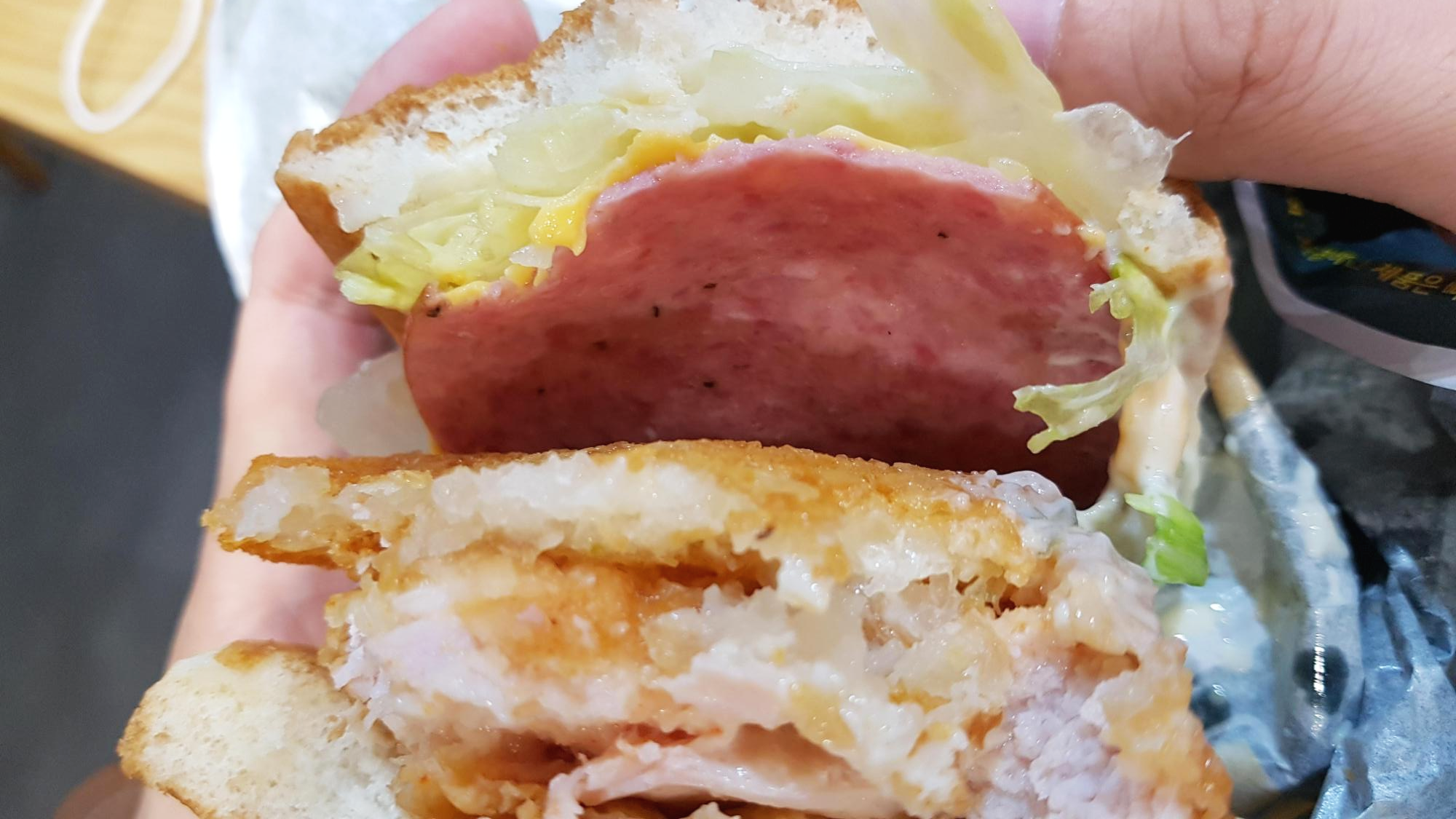 개인적으로 햄버거에 햄을 넣느니 베이컨을 넣겠다라는 주의인지라, 불호인 맛이었다.