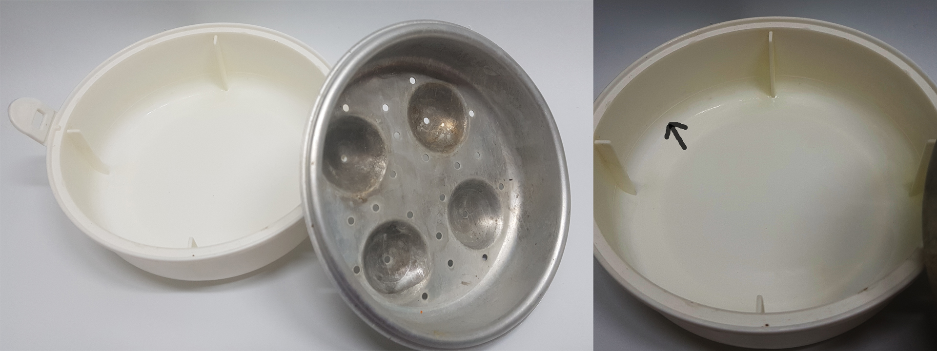 전자레인지 조리를 끝낸 계란의 모습이다.