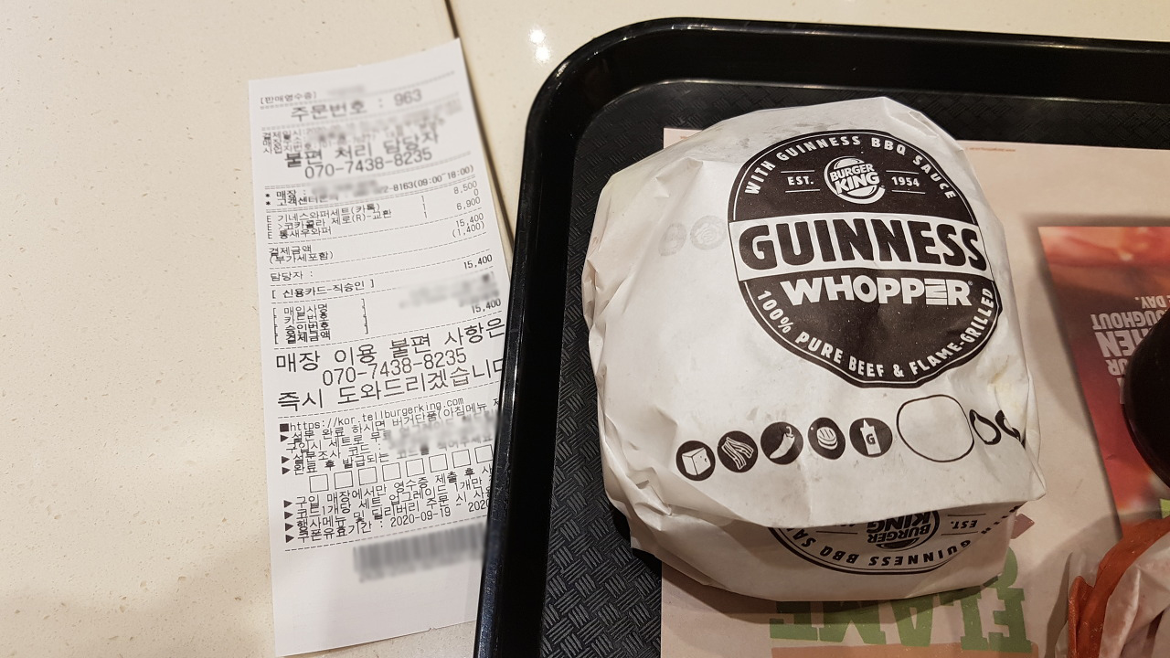 기네스와퍼가 맛있게 느껴지는 것 같았다. 결론은 기네스와퍼는 꽤 맛있는 버거이다.