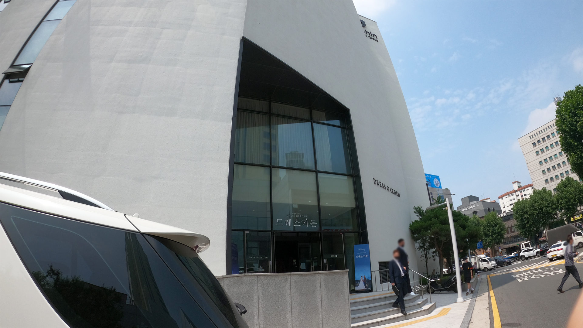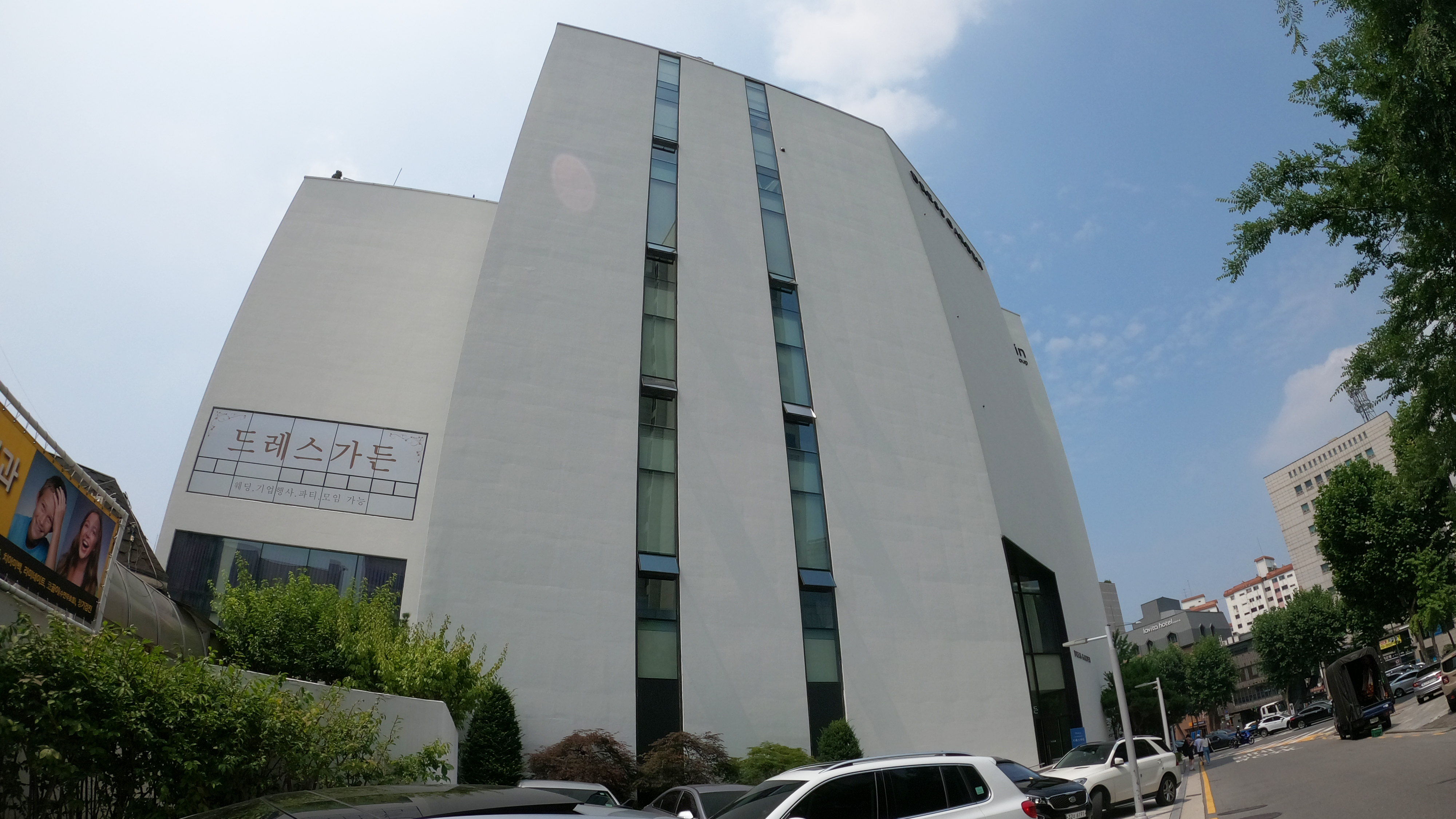 청담역 12번 출구로 나오자마자 있는 골목으로 들어가니 하얀색의 드레스가든 건물이 똭 보였다.