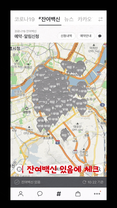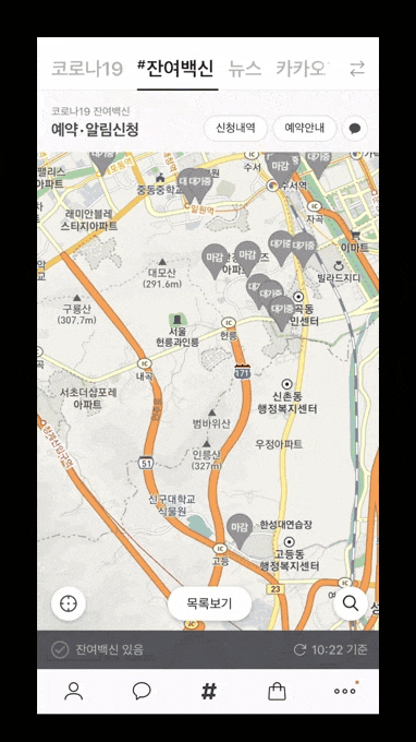 ⠀⠀⠀ 코로나19 잔여백신, 톡에서 실시간으로 예약할 수 있다는 건 모두 알고 계시죠? 이번엔 좀 더 자세한 예약 방법을 안내해 드릴게요. STEP 01. #잔여백신 탭 들어가기 카카오톡 #탭을 클릭하