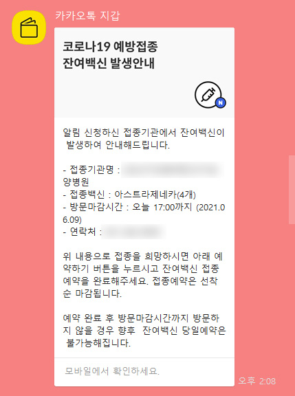 그리고 다음날엔 네이버에서, 다다음날엔 카카오에서 잔여백신 알람을 받았다.